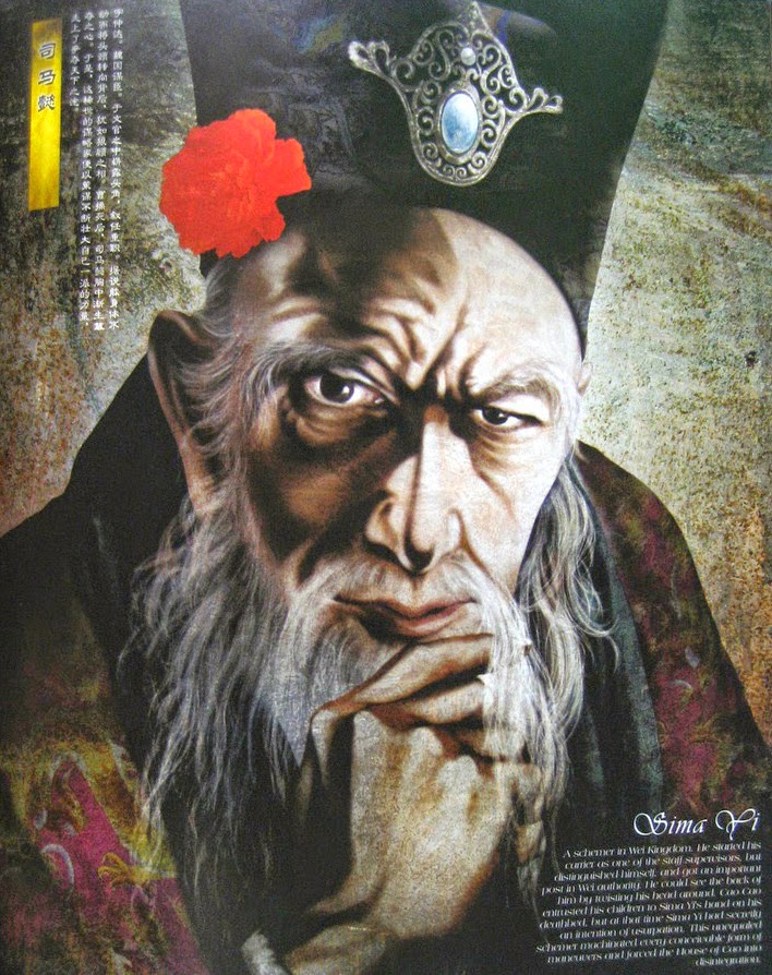 | Tư Mã Ý tự Trọng Đạt, là ng Khổng Minh kiêng nể nhất, Tào Tháo phải đề phòng. Ng đặt nền móng cho nhà Tấn thống nhất TQ. Là hậu duệ của nhà sử học Tư Mã Thiên. Thấy bảo Ý có thể xoay đầu trên cổ 180 độ!? |